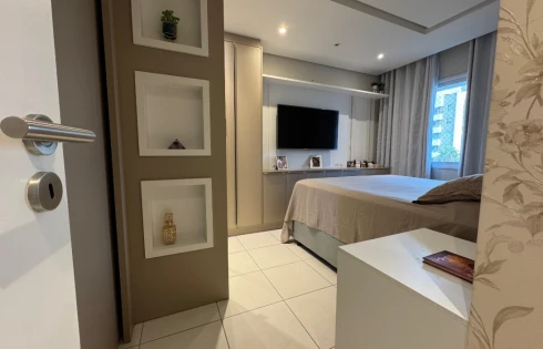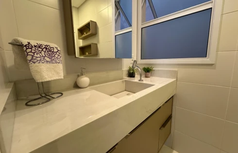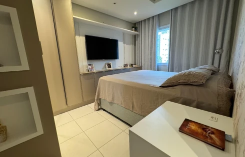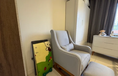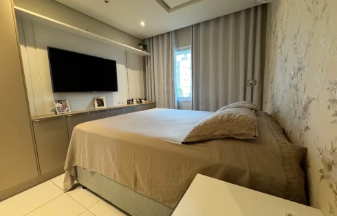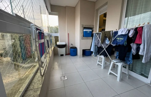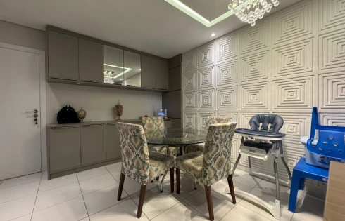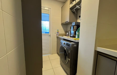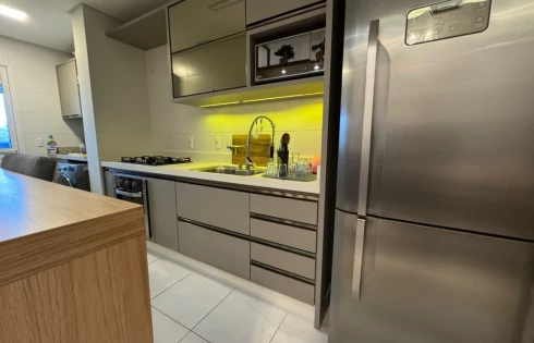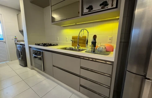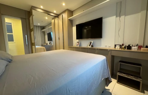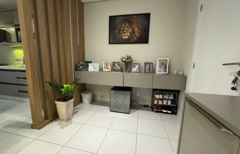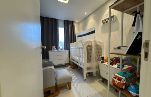 O apartamento conta com infraestrutura completa, incluindo área de serviço, cômodos climatizados com ar condicionado e móveis planejados. A segurança é garantida por interfone, portão eletrônico e portaria presencial, proporcionando tranquilidade aos moradores. O condomínio oferece ainda elevador, churrasqueira