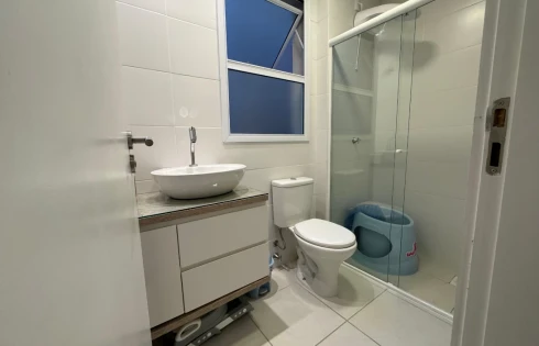 Apartamento com 78m² de área privativa, localizado na Palhoça. Dispõe de 2 dormitórios, sendo 1 suíte, 1 banheiro social e 2 vagas de garagem. O imóvel possui excelente localização, e encontra-se em ótimo estado de conservação, pronto para morar.