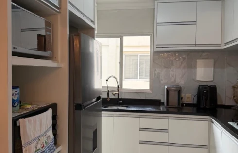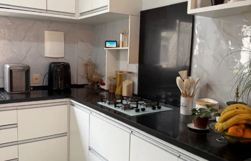 - Cozinha americana com móveis planejados;