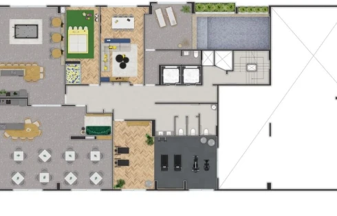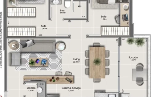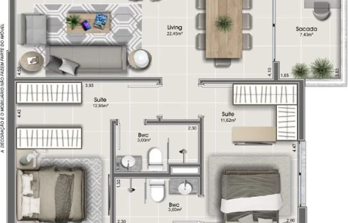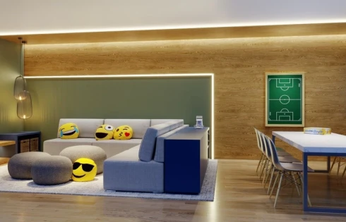 Área de lazer individual para cada bloco, entregues mobiliadas, decoradas, equipadas e climatizadas: