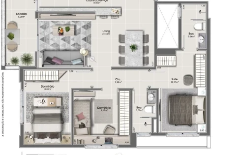 Unidades de 3 Dormitórios c/ 1 suíte a partir de R$ 1.243.000,00