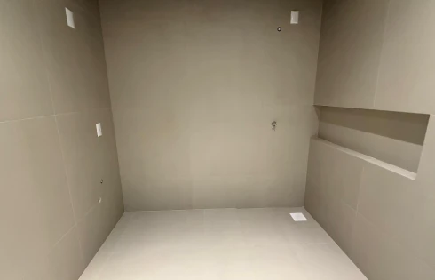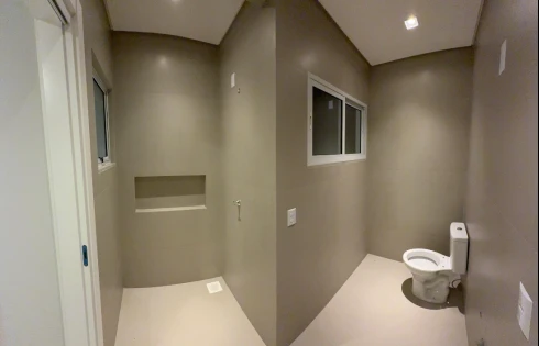 - 1 Banheiro social amplo, com espera para duas cubas, com ventilação natural e claraboia.
