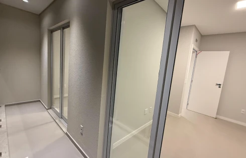 - 3 Dormitórios, todos com sacada, sendo 1 suíte máster, com amplo closet e 01 banheiro para duas cubas (resultando em aproximadamente 25m²);