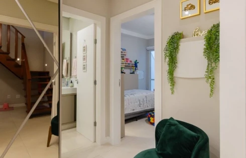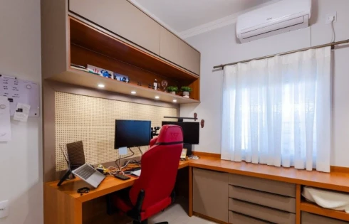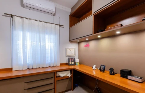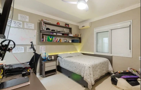 A casa conta com sistema de água pressurizador, circuito fechado de TV com 5 câmeras de segurança, interfone com câmera e área de serviço independente. O imóvel possui 2 pavimentos, rede elétrica nova com quadro moderno, amplo ambiente para bicicletas e equipamentos, além de sacada para área de piscina. A propriedade está em excelente estado de conservação e aceita financiamento bancário.